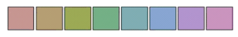 其中8個(gè)顏色樣品分別為:暗灰色、暗黃色、深黃綠色、黃綠色、淡藍(lán)綠色、淡藍(lán)色、淡紫色、紅紫色。如下圖所示: