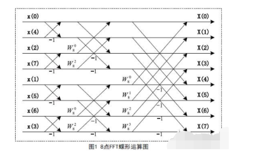 圖1為8點(diǎn)FFT的運(yùn)算圖。