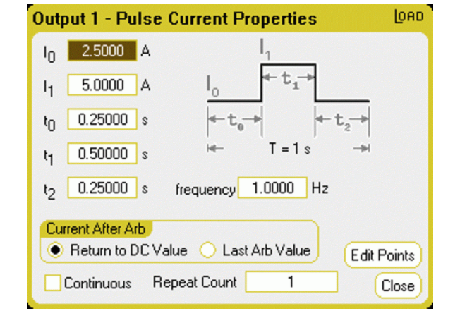 配置好負(fù)載后,下一步將是創(chuàng)建一個波形(步長或脈沖),以生成瞬態(tài)的方式為電源供電。KeysightN6700系列具有一系列內(nèi)置波形,可簡化此操作。只需描述幾個點(diǎn)就可以生成動態(tài)負(fù)載。當(dāng)電流值從50%變?yōu)?00%時,階躍波形會產(chǎn)生一個瞬變,脈沖會產(chǎn)生兩個瞬變,每個邊沿一個。參見圖3。