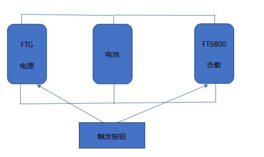 測試連接:電源和負(fù)載直接接入電池的正負(fù)極,使用一個觸發(fā)按鈕同步觸發(fā)。