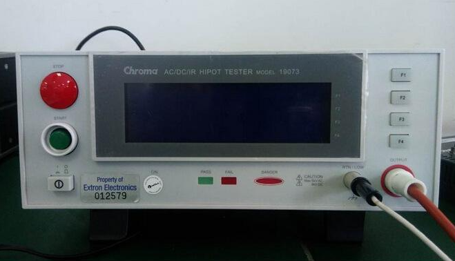 其工作原理是:把一個高于正常工作的電壓加在被測設(shè)備的絕緣體上,持續(xù)一段規(guī)定的時間,加在上面的電壓就只會產(chǎn)生很小的漏電流,則絕緣性較好。程控電源模塊、信號采集調(diào)理模塊和計算機控制系統(tǒng)三個模塊組成測試系統(tǒng)。選用耐壓儀的2個指標:最大輸出電壓值及最大報警電流值的數(shù)值。