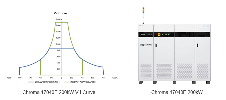 Chroma 17040E能源回收式電池測(cè)試系統(tǒng)是高壓電池包測(cè)試?yán)髦?,單臺(tái)200kW輸出,并聯(lián)3臺(tái)功率600kW,用于模擬大功率充電樁,具備兩段電壓、電流操作區(qū)間,電壓最高可達(dá)1,700V,在1,700V檔位最大電流可操作達(dá)400A,在850V電壓檔位輸出可操作至800A,符合現(xiàn)有乘用車與未來(lái)高壓電池包測(cè)試應(yīng)用,兼顧高電壓與大電流測(cè)試需求,適合用于電動(dòng)車?yán)m(xù)航力試驗(yàn)、產(chǎn)品進(jìn)出貨檢驗(yàn)、設(shè)計(jì)驗(yàn)證研究…等用途,結(jié)合電池廠生產(chǎn)線的電池包下線測(cè)試系統(tǒng)(EOL-End Of Line ATS),縮短電池包生產(chǎn)時(shí)間(cycle time),符合電池包生產(chǎn)的測(cè)試要求并提升產(chǎn)能。