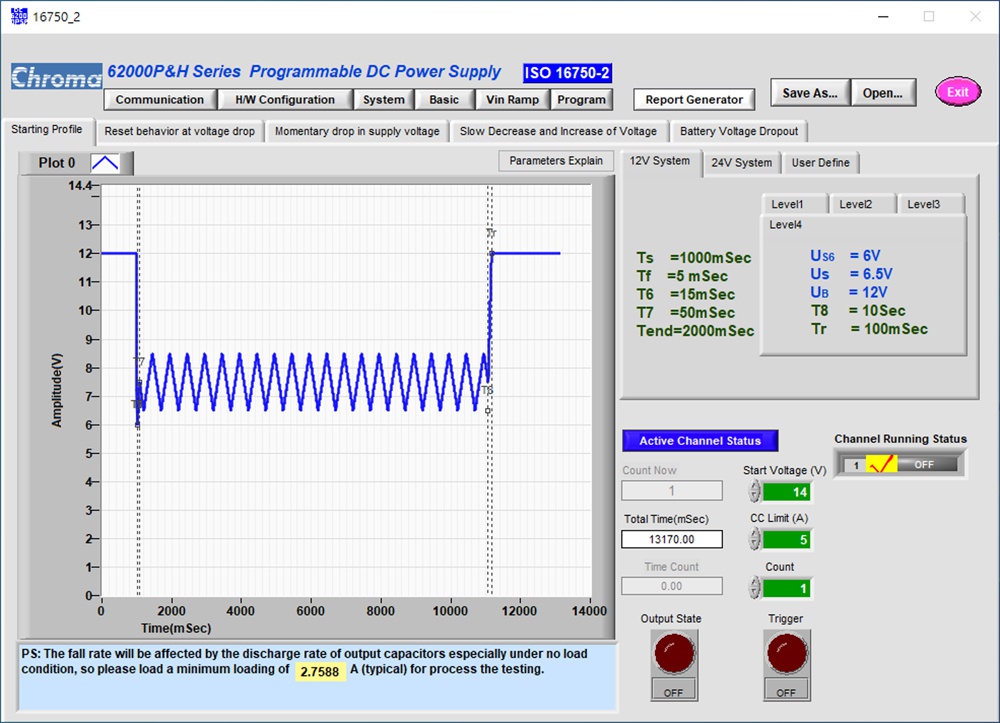 ▲Chroma 62000P & Chroma 62000H Series 圖形化操作軟件 (ISO16750-2測(cè)試)