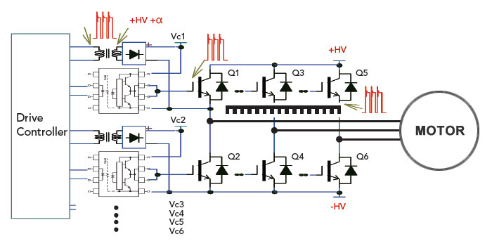 另外,每個模塊的閘極(Gate)與射極(Emitter)或源極(Source)之間?作偏壓可能是由各別的變壓器所提供,而變壓器的??次側(cè)之間也會存在?頻的?電壓差?當變壓器一二次側(cè)的絕緣能?不足,持續(xù)性異常放電的突波也可能會使數(shù)字控制動作異常及導致晶體管故障?