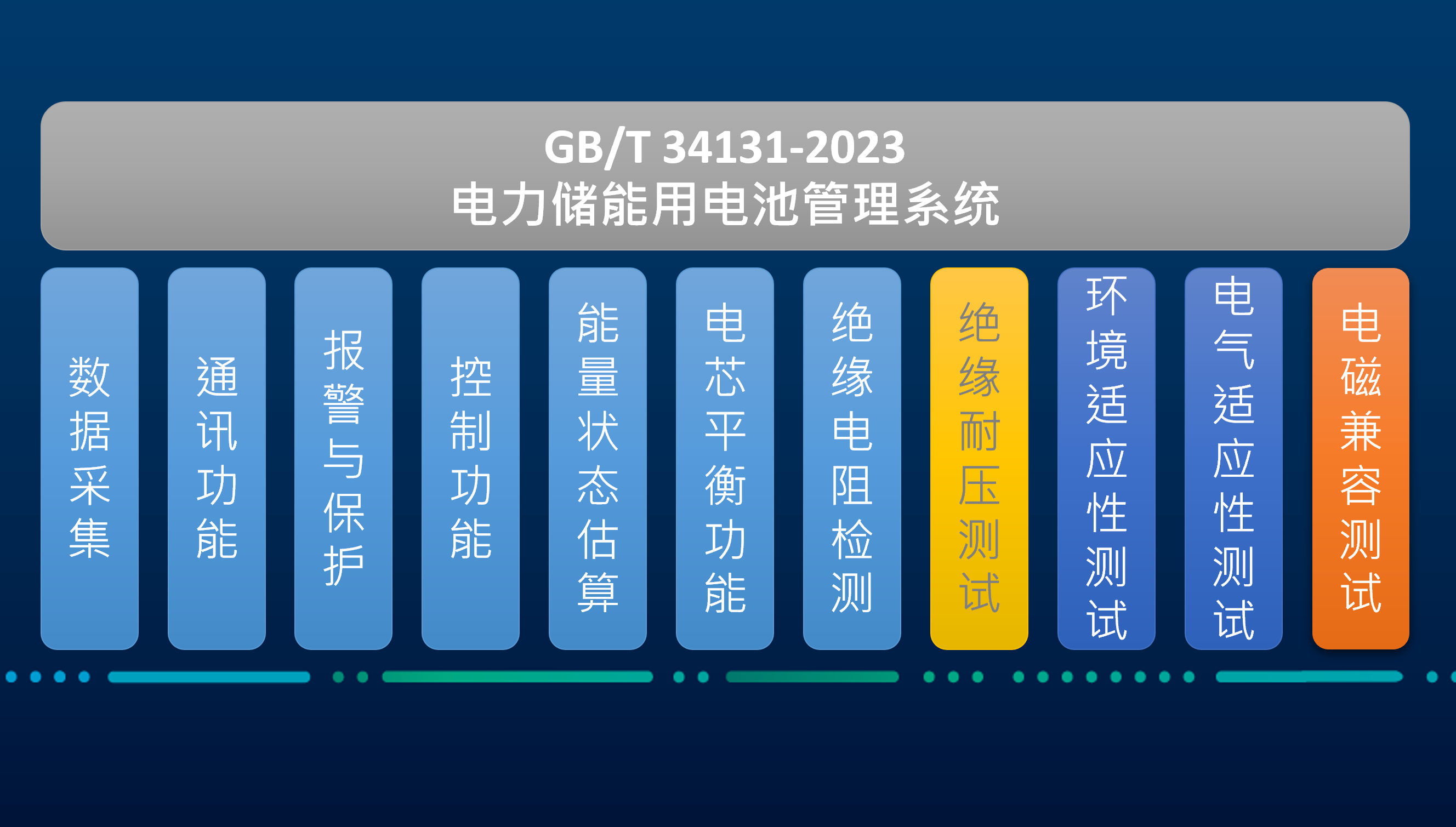2023年10月,新版GB/T 34131-2023推出后,一發(fā)布即引發(fā)儲(chǔ)能產(chǎn)業(yè)對(duì)BMS(電池管理系統(tǒng))檢測(cè)的高度關(guān)注。此次改版將標(biāo)題和范疇從「電化學(xué)儲(chǔ)能電站用鋰離子電池管理系統(tǒng)」更改為「電力儲(chǔ)能用電池管理系統(tǒng)」,擴(kuò)大了涵蓋范圍,不再局限于鋰離子電池儲(chǔ)能系統(tǒng)。新法規(guī)還明確規(guī)范了具體測(cè)試項(xiàng)目、測(cè)試方法和條件,為檢測(cè)單位提供了更具體的指引,預(yù)期將成為儲(chǔ)能業(yè)者競(jìng)爭的關(guān)鍵。