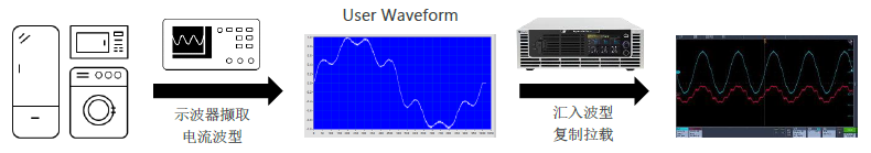 簡(jiǎn)稱UDW功能,用戶可透過(guò)示波器擷取真實(shí)負(fù)載(如家電設(shè)備)的拉載電流波型,或以Excel編輯自定義波型,藉由Chroma設(shè)備專用軟件SoftPanel,將該波型以單一周期型式儲(chǔ)存,并匯入至Chroma 61815來(lái)復(fù)現(xiàn)出定義的拉載電流。如此可解決V2L拉載測(cè)試的標(biāo)準(zhǔn)化及重復(fù)性等問(wèn)題,且透過(guò)多達(dá)200組的UDW模型建置,可直接取代大量的真實(shí)負(fù)載需求,提供用戶更佳的配置便利性、更少空間成本,以及更快速便利的測(cè)試流程。