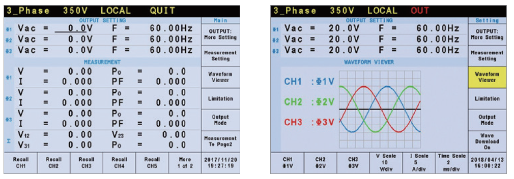 Chroma 61507/61508/61509及61511/61512機種提供選擇單相或三相輸出功能,使用者可以經(jīng)由前面板或遠端控制選擇單相或三相輸出模式。即使設(shè)置在單相輸出模式,仍然可以提供全功率輸出的能力,不需擔心輸出功率規(guī)格會有遞減的情形。