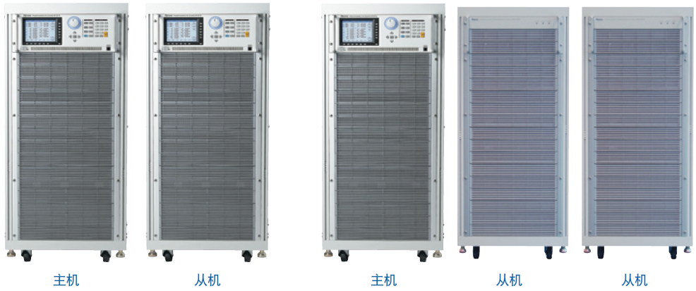 Model 61501/61502/61503/61504/61505機種則可以使用三臺單機,在三相模式的同步機制下串聯(lián)成三相電輸出使用。