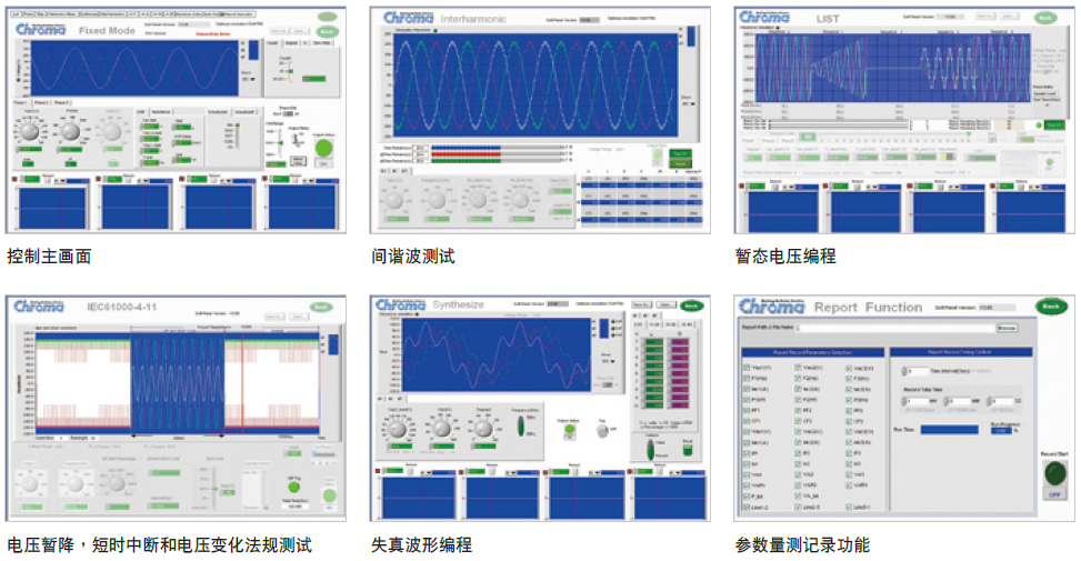 Chroma 61500系列Softpanel是一套專為控制交流電源供應器所設(shè)計的電腦圖形化操作介面,其多功能的圖型化面板及簡易的操作方式提供使用者一個多功能及容易操作交流電源供應器的環(huán)境。同時可經(jīng)由預設(shè)的IEC抗擾度法規(guī)設(shè)定進行相關(guān)法規(guī)測試 (IEC 61000-4-11, IEC 61000-4-13, IEC 61000-4-14, IEC 61000-4-28) 。