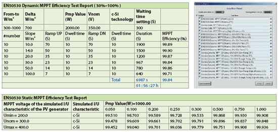 time后選取欲測試EN50530 &Sandia項目,即可自動執(zhí)行已經(jīng)規(guī)劃完成的EN50530 & Sandia Lab內(nèi) Static及Dynamic MPPT測,當(dāng)測項結(jié)束后自動生成報表于Excel表格內(nèi)。