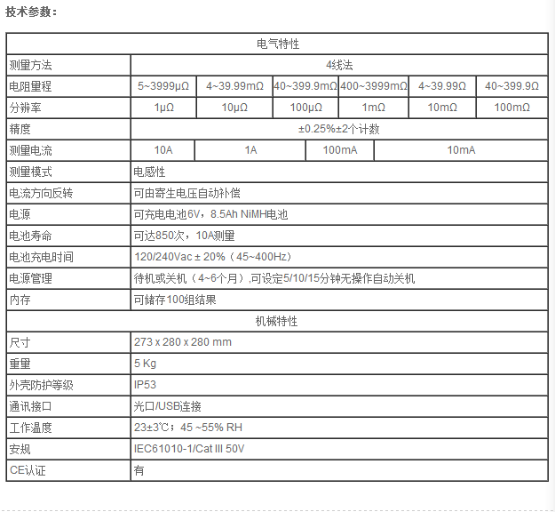 CA6240可測(cè)量1 μΩ 至400 Ω的電阻阻值,分辨率達(dá)1μΩ??蛇x擇10A、1A、100 mA或10 mA測(cè)試電流,并具有測(cè)試電流反向功能。