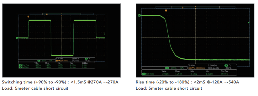 17010H采用能源回收電路構(gòu)架,不同于傳統(tǒng)開關(guān)式電源設(shè)備,具備高測(cè)量精準(zhǔn)度/精確度、高速電流響應(yīng)、充放電轉(zhuǎn)換零交越時(shí)間、多電流量程等特點(diǎn),能夠幫助電池芯實(shí)驗(yàn)提高電容測(cè)量試精準(zhǔn)度、性能參數(shù)辨證以及更擬真的動(dòng)態(tài)電流與功率測(cè)試;此外,17010H具備200%脈沖電流輸出功能,單通道連續(xù)電流為300A,可提供600A的30S脈沖測(cè)試電流,有利于功率能力與直流內(nèi)阻測(cè)試此類需要短時(shí)間且高倍率測(cè)試電流之實(shí)驗(yàn),可節(jié)省設(shè)備購(gòu)置成本。