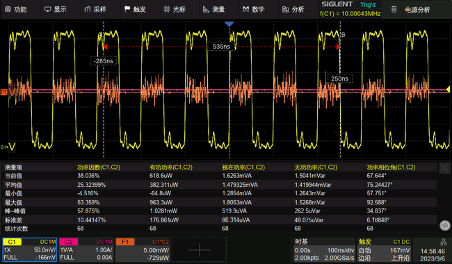 SDS3000X HD可選配電源分析功能,再搭配鼎陽(yáng)的電壓探頭(如DPB5000系列)、電流探頭(CP6000系列),可以快速、準(zhǔn)確地分析電源質(zhì)量、電流諧波、浪涌電流、瞬變響應(yīng)、MSO管安全作業(yè)區(qū)(SOA)等12項(xiàng)參數(shù),如通過(guò)將開(kāi)關(guān)損耗降至最低提高電源效率、通過(guò)統(tǒng)計(jì)功率器件在所有工況下瞬時(shí)參數(shù)超出安全工作區(qū)的概率評(píng)估器件工作穩(wěn)定性、通過(guò)對(duì)輸入電流進(jìn)行諧波分析,觀察是否存在異常諧波影響電能質(zhì)量等等,可以提高電源開(kāi)發(fā)人員的工作效率。