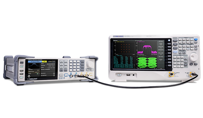 可生成常用的 ASK, FSK, PSK, QAM 等調(diào)制類型的IQ 信號。 采用創(chuàng)新的重采樣技術(shù), 可以在250 Symb/s ~ 500 MSymb/s 范圍內(nèi)的任意符號率下獲得優(yōu)異的EVM 性能。內(nèi)建的數(shù)字正交調(diào)制器可將IQ 信號的載波調(diào)制到1 GHz 范圍內(nèi)的任意頻點;可使用上位機軟件EasyIQ 來生成各種類型的IQ 信號。