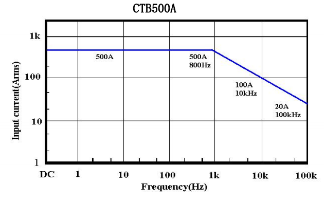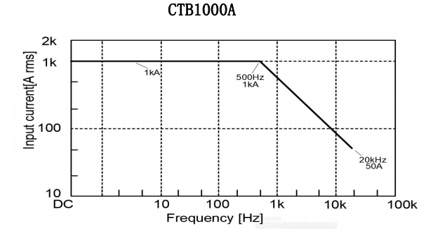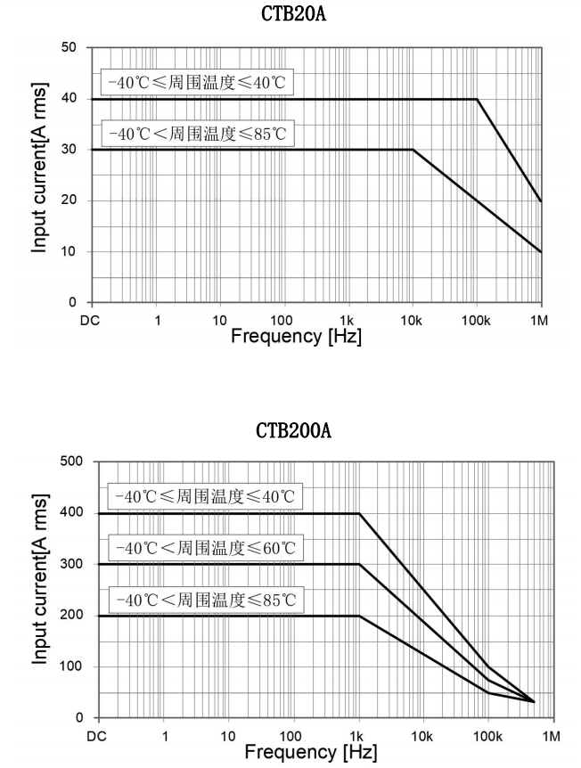 持續(xù)最大輸入范圍會因測定電流的頻率不同而不同。超過最大電流連續(xù)使用會導(dǎo)致探頭燒毀。