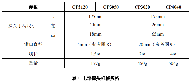 電流探頭機(jī)械規(guī)格(典型)
