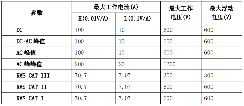 測(cè)量條件:23℃,60%RH,附近無(wú)載流線,被測(cè)導(dǎo)線穿過(guò)中心測(cè)試,負(fù)載阻抗 1MΩ。