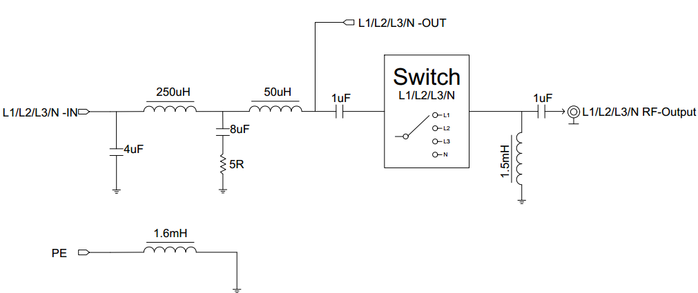 5 (轉(zhuǎn)換開關(guān)):分別將 N、L1、L2、L3 輸出信號(hào)切換到 RF OUTPUT 端口。