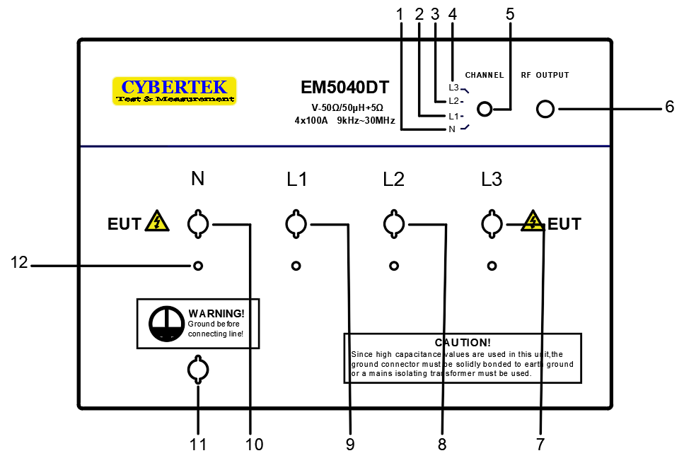 10(被測(cè)設(shè)備(EUT))供電接口:N 相被測(cè)設(shè)備電源接口,該螺栓尺寸為 10mm。
