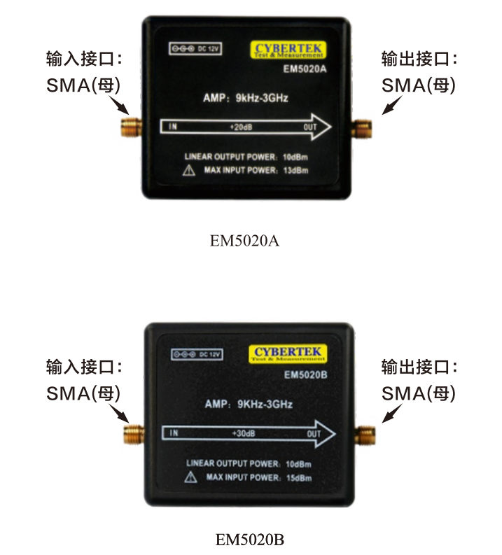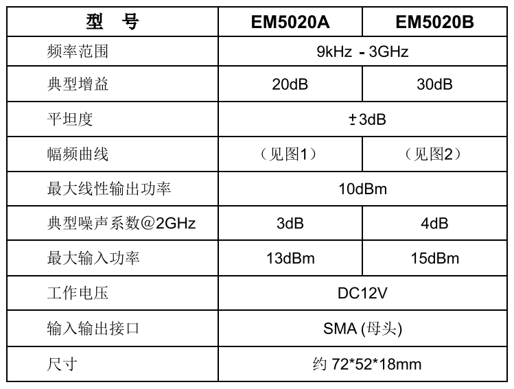 1) 未知信號大小測量時,不能連接前置放大器!確認(rèn)信號很微弱時,才能連接前置放大器。EM5020A最大輸入功率13dBm; EM5030B最大輸入功率15dBm;超過該值可能會引起放大器損壞。