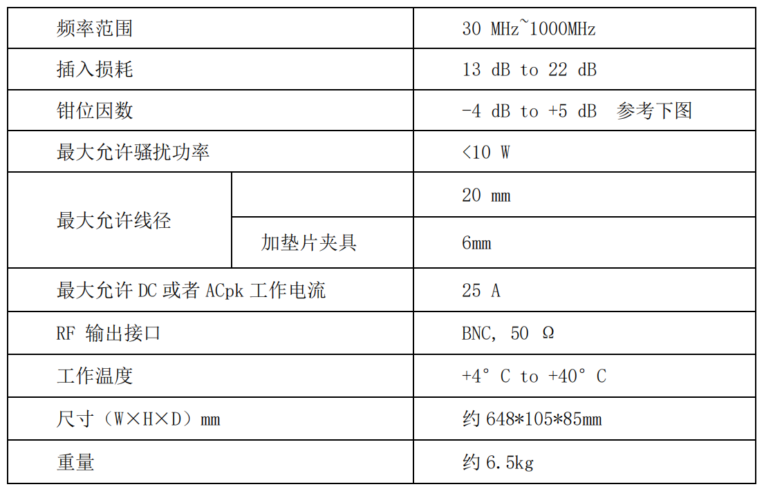 EM5018 功率吸收鉗主要用于測量被測設備電源線上的功率騷擾信號,頻率范圍從0MHz~1000MHz,產(chǎn)品符合 CISPR 16-1-3 的規(guī)定,工作電流高達 25A,孔徑達到 20mm,廣泛應用于根據(jù) CISPR 13/EN 55013、CISPR 14-1/EN 55014-1 等測試標準電纜線上騷擾功率的測量。