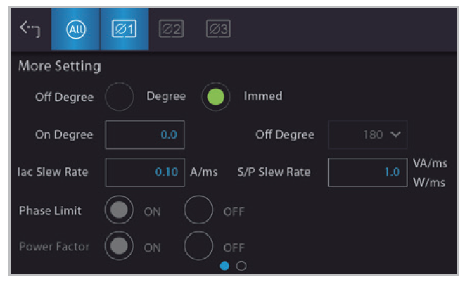 63800R系列能源回收式交流電子負(fù)載配備觸控式操作螢?zāi)?,提供直觀的UI介面讓用戶快速進(jìn)行多項(xiàng)設(shè)定和操作。交流負(fù)載的進(jìn)階功能如拉載/卸載角度、拉載電流Slew Rate等設(shè)定,皆隱藏于右上角More Setting功能,使主設(shè)定畫面簡潔干凈。而透過全屏模式,可將所有量測值擴(kuò)展至全屏,適用于完成輸入設(shè)定后的觀察環(huán)節(jié),提供用戶更清楚的量測參數(shù)畫面。