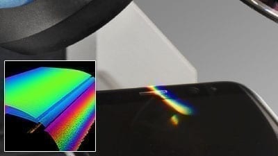 出色的表面角度性能 用于曲面邊緣的掃描和測量 FocalSpec傳感器能夠以最大20度的表面角度捕獲曲面玻璃的輪廓(例如掃描2.5/3D曲面玻璃)。 如果角度較大,可將傳感器或樣品進行傾斜,或用另一個FocalSpec傳感器捕獲樣品。 |